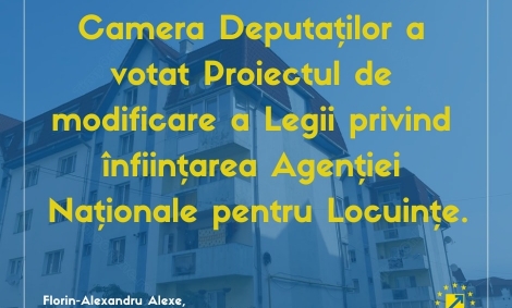 Camera Deputaților a votat Proiectul de modificare a Legii privind înfiinţarea Agenţiei Naţionale pentru Locuinţe, pe care l-am inițiat împreună cu colegii mei liberali.