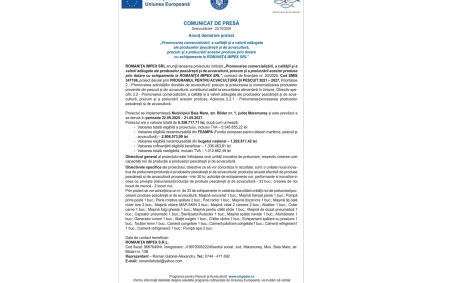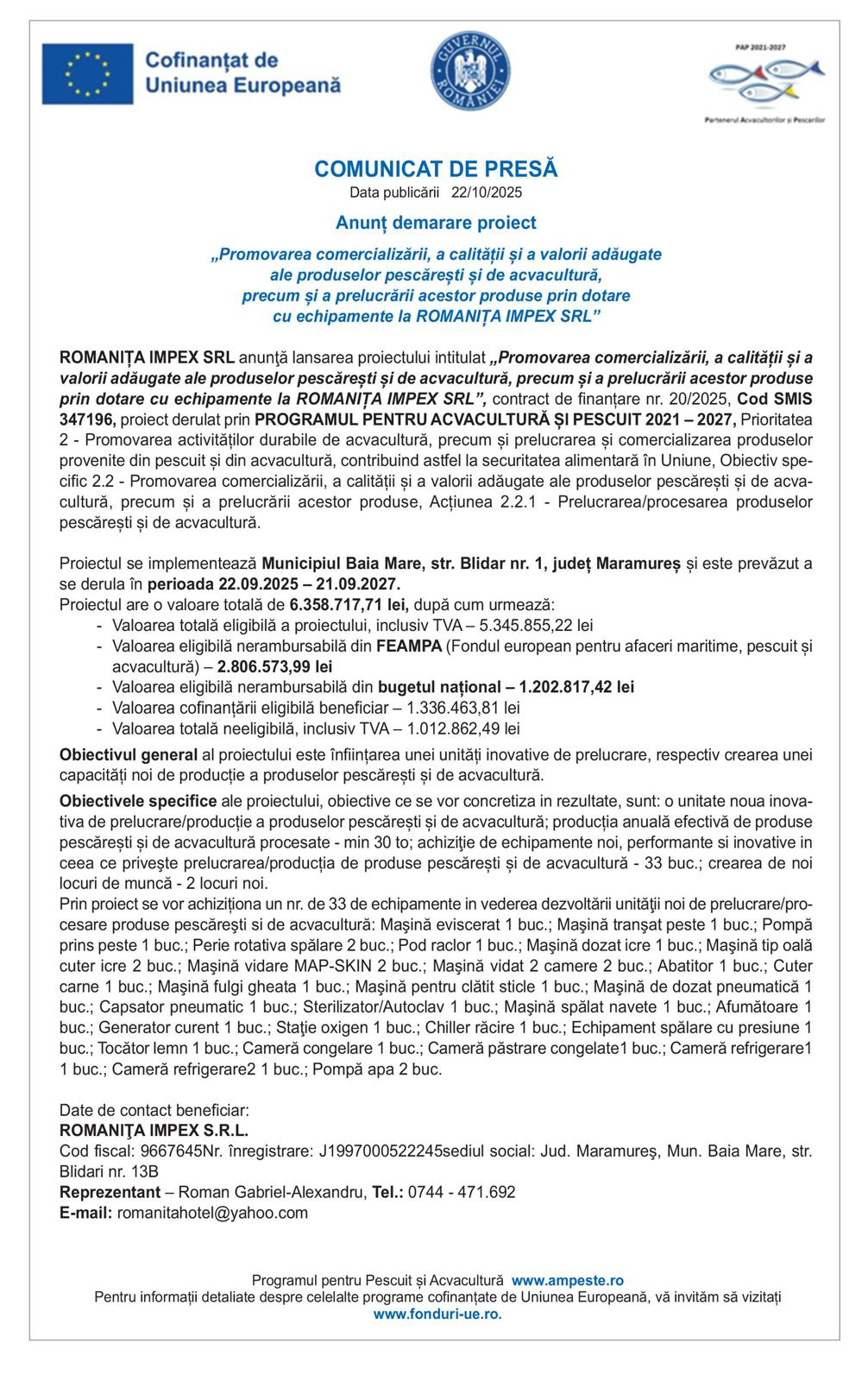 Anunț demarare proiect ROMANIȚA IMPEX SRL