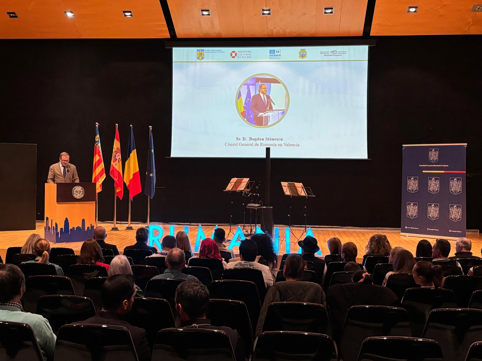 Au participat domnul Consul General Bogdan Stănescu și membri ai Consulatului General al României la Valencia, Primăria Benidorm, oficialități locale și regionale spaniole, membri ai corpului consular, numeroși reprezentanți ai comunității românești rezidenți în Comunitatea Valenciană și în Benidorm, precum și cetățeni spanioli având legături deosebite de prietenie cu România.