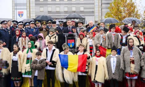 Îmi doresc ca mesajul pe care îl transmitem astăzi din Baia Mare să răsune în toată țara. Să fie auzit de toți cei care au urechi să audă, simțit de toți cei care au în inimi iubire pentru România și poporul român. Cel mai mare inamic al Marii Uniri, pe care o sărbătorim astăzi și pe care străbunicii noștri au înfăptuit-o acum mai bine de un secol, nu a fost sabia, ci dezbinarea. Un inamic invizibil, care se insinuează în tăcere, uneori sub forma unor ideologii, alteori sub chipul unor indivizi care ne îndeamnă să ne urâm propriul frate doar pentru că nu se aliniază convingerilor noastre. Noi, aici, în Baia Mare, în Maramureșul nostru sfânt, ne luptăm cu acest inamic nu de 10, nu de 20, nu de 100 de ani. Și îl învingem de fiecare dată. Am învins dezbinarea prin acceptare, prin colaborare, prin dragoste unii față de alții. Am înțeles din vremuri vechi că, indiferent de etnie, de religie, de statut social, tot spre aceeași pâine întindem mâna, tot pe același pământ călcăm, tot aceleași sărbători ne încălzesc sufletul. Diversitatea etnică, culturală, religioasă, toate diferențele dintre noi nu au fost niciodată o slăbiciune aici. Ci temelia unei comunități a cărei supremă tărie stă în unitatea ei.