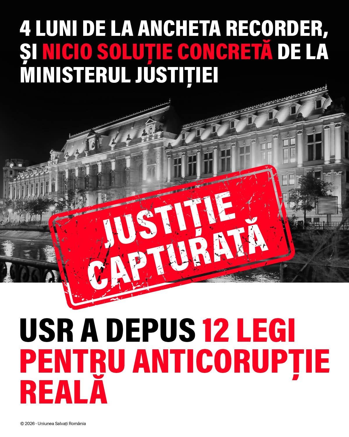 „La 4 luni de la dezvăluirile din Recorder Justiție Capturată, Ministerul Justiției n-are nici acum vreo soluție concretă pentru a smulge Justiția din mâinile clanului de șmecheri care a capturat-o.