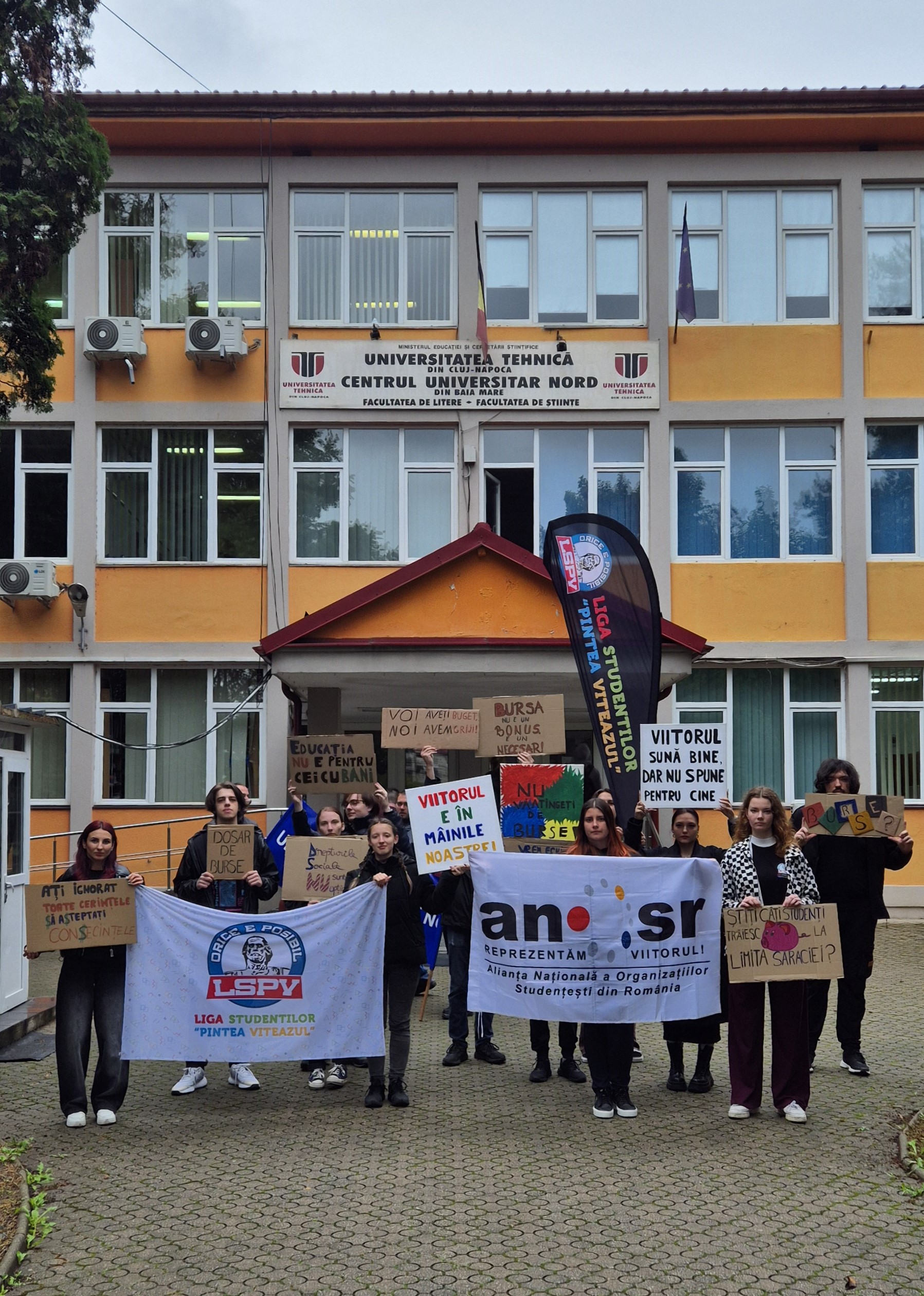 Dincolo de momentul festiv, a avut loc protestul studenților și cadrelor didactice în fața universității. Membrii Ligii Studenților „Pintea Viteazul” au ales să fie în stradă, alături de Sindicatul Profesorilor Universității de Nord, pentru a transmite un mesaj ferm împotriva ultimelor reforme adoptate în educație. Protestul s-a desfășurat chiar în fața Centrului Universitar Nord din Baia Mare, transformând începutul de an academic într-o manifestație pentru drepturi și echitate. În loc să fie prezenți la Festivitatea de Deschidere a noului an universitar, studenții au ales să lase deoparte discursurile de „bun venit” și să strige în stradă. Prin acest gest simbolic, ei au transmis un mesaj clar - NU acceptăm ca începutul academic să fie marcat de tăieri, restricții și ignorare. Această acțiune din Baia Mare se înscrie într-un val național - studenți din marile centre universitare, prin organizații membre ANOSR, au ieșit în stradă simultan, pentru a-și apăra drepturile fundamentale în educație. Reforma educației nu poate începe prin suprimarea accesului și diminuarea sprijinului pentru cei care o urmează.