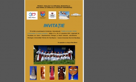 Conferinţa internaţională „Tradiţie şi inovaţie. Unitate şi diversitate în context european”, Ediţia a II-a, vine ca o continuare firească a primei ediţii demarate anul trecut, în aceeaşi perioadă, la sfârşitul lunii octombrie 2014. Acest demers ştiinţific, organizat de Facultatea de Litere, specializarea Etnologie, din cadrul Centrului Universitar Nord din Baia Mare, UTCN, apare ca o nevoie acută de a valorifica zestrea de suflet, zestrea strămoşească a maramureşenilor atât la nivel internaţional, cât şi la nivel naţional. Arhetipul, autenticitatea, originalitatea, frumosul dezvăluie filonul artei tradiţionale şi permit valorificarea patrimoniului cultural maramureşean, un patrimoniu unic în contextul spiritualităţii naţionale, europene şi chiar universale.