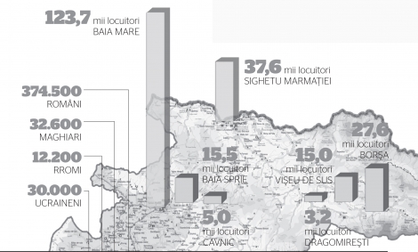 Mai puţini şi mai bătrâni. La 20 octombrie 2011, populaţia stabilă a judeţului Maramureş era de 478.659 persoane, din care 243.995 femei (51%). Faţă de situaţia existentă la recensământul anterior, populaţia stabilă a scăzut cu 31,5 mii persoane. Populaţia stabilă a celei mai mari localităţi din judeţ este de 123,7 mii persoane - municipiul Baia Mare. Datele arată şi că migraţia la oraş continuă: în municipii şi oraşe trăiesc 275,3 mii persoane, reprezentând 57,5% din totalul populaţiei stabile.
