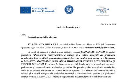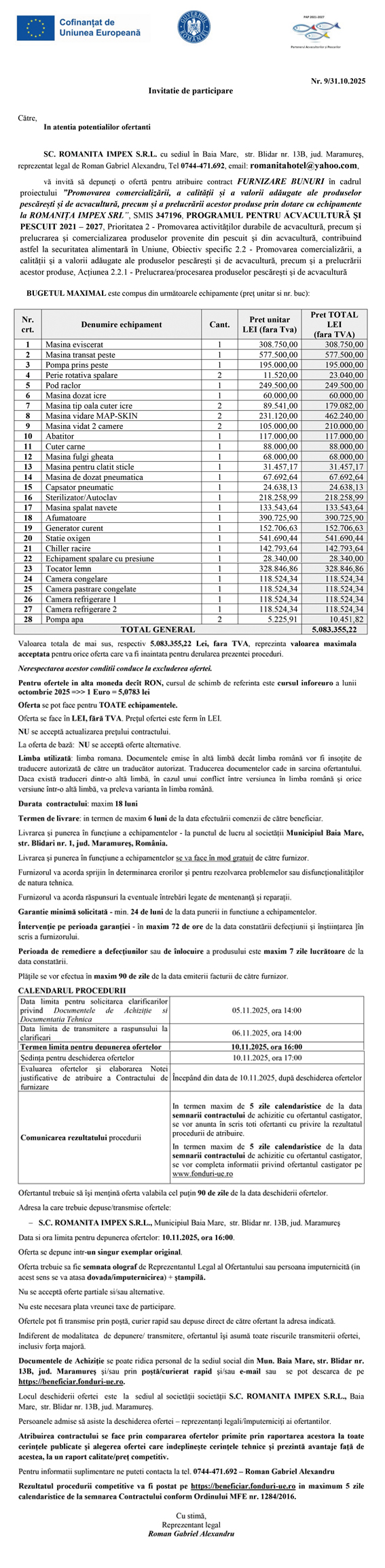 ROMANIȚA IMPEX SRL: Invitație de participare depunere ofertă