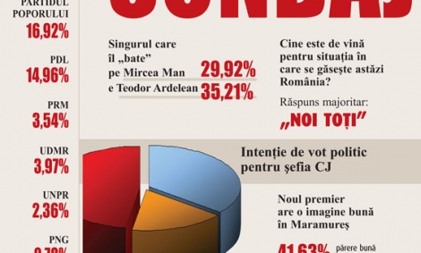 „30%!”, „cine a comandat sondajul?” „Aaaa, partidul X... Atunci e clar”. Sunt comentarii cu care ne-am obisnuit si care pun sub semnul intrebarii mai toate sondajele de opinie. Tocmai de aceea, GAZETA de Maramures si-a asumat un proiect ambitios, posibil unic pe piata ziarelor locale din tara: realizarea unui sondaj de opinie, total obiectiv si idependent, cu resurse propri, pus doar in slujba informarii corecte a cititorilor. Timp de doua saptamani, oamenii GAZETEI au sunat si intervievat fata in fata 1.400 de maramureseni din toate colturile judetului, de