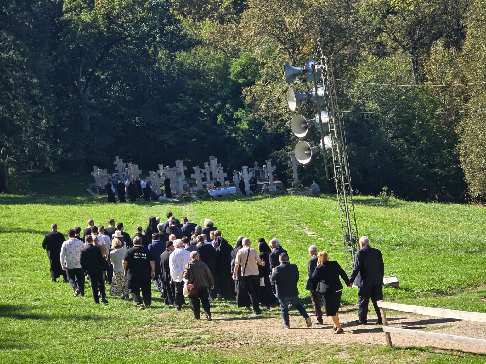 Fără nicio opreliște, am fixat deplasarea la Mănăstirea Nicula în 16 septembrie 2024 și, prin părintele profesor Ioan Bizău, am înștiințat de intenția grupului petrovean Mănăstirea Nicula și pe Înaltul Andrei pe care l-am auzit în repetate rânduri recitând, în cuvintele de învățătură, poezii de Ioan Alexandru. Pentru a ajunge la timp la parastas, acesta a fost fixat la ora 12.00 al zilei menționate și toți cei din Maramureșul Voievodal au ajuns la destinație la ora 11.00. Lor li s-au alăturat arădenii Ioan Draga și Eugen Châlinicean iar la ora fixată a sosit și Înaltul Andrei și a săvârșit parastasul programat în prezenta a 14 credincioși.